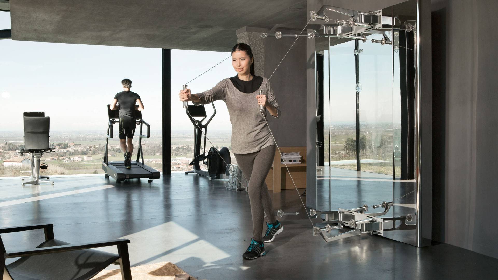 Die spiegelnde Hochglanzfläche ermöglicht die einfache Überprüfung der Körperhaltung während des Trainings.